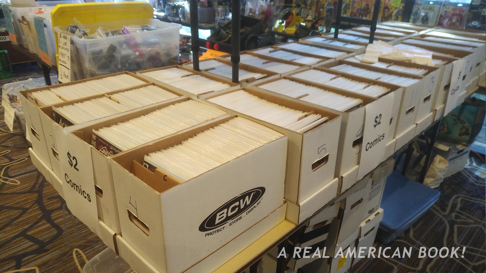 And one more comparison. There were several dealers selling comic books at that earlier convention. One dealer had a great spread of long boxes at DFW. I think this belonged to Davis’ Dreadnoks: