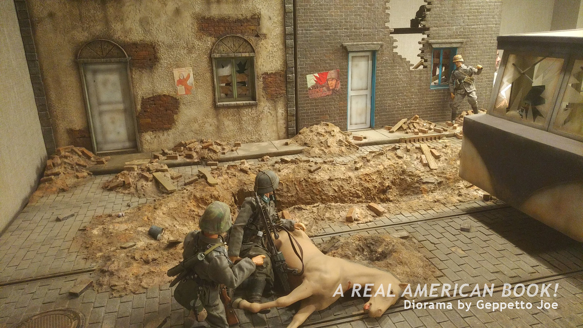 This was a specific city from a specific war — I didn’t write it down in my notes I was so dazzled by the size and the detail. The dirt! The walls! The trolley! Let’s focus on the broken glass in the trolley: