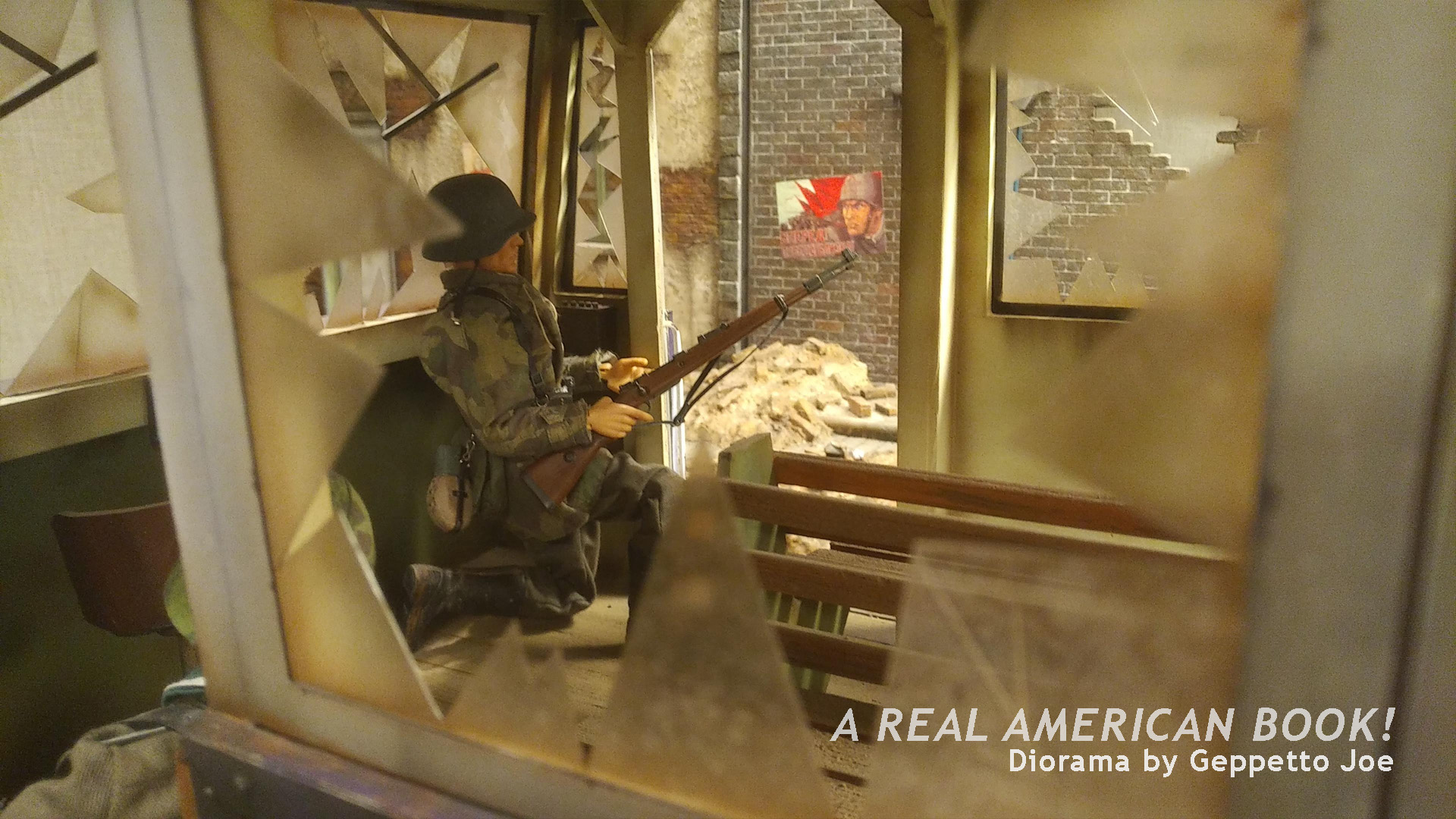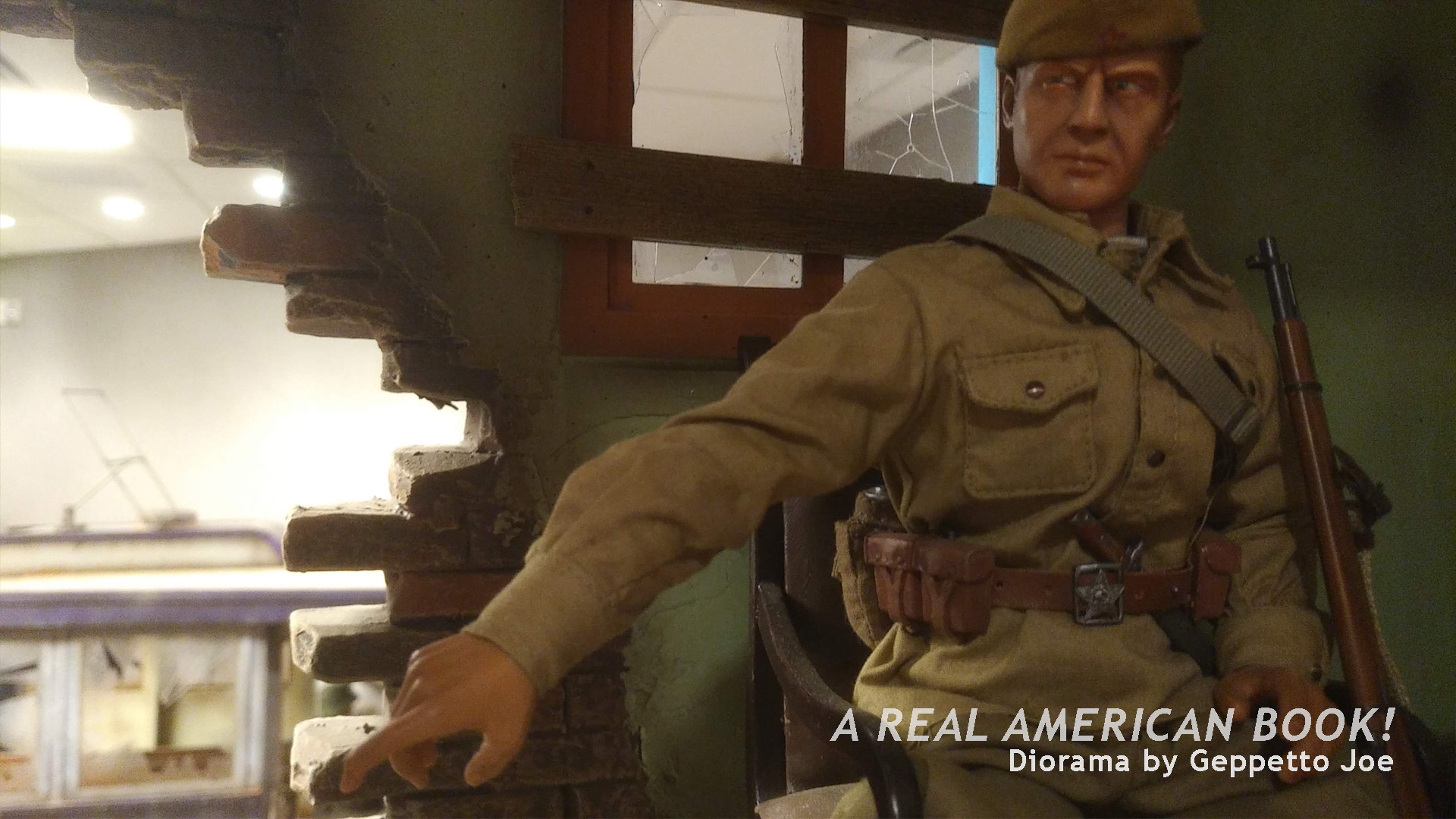 Zooming into one of the underground rooms in the rear, this soldier is keeping these two children safe. Or is it the other way around?