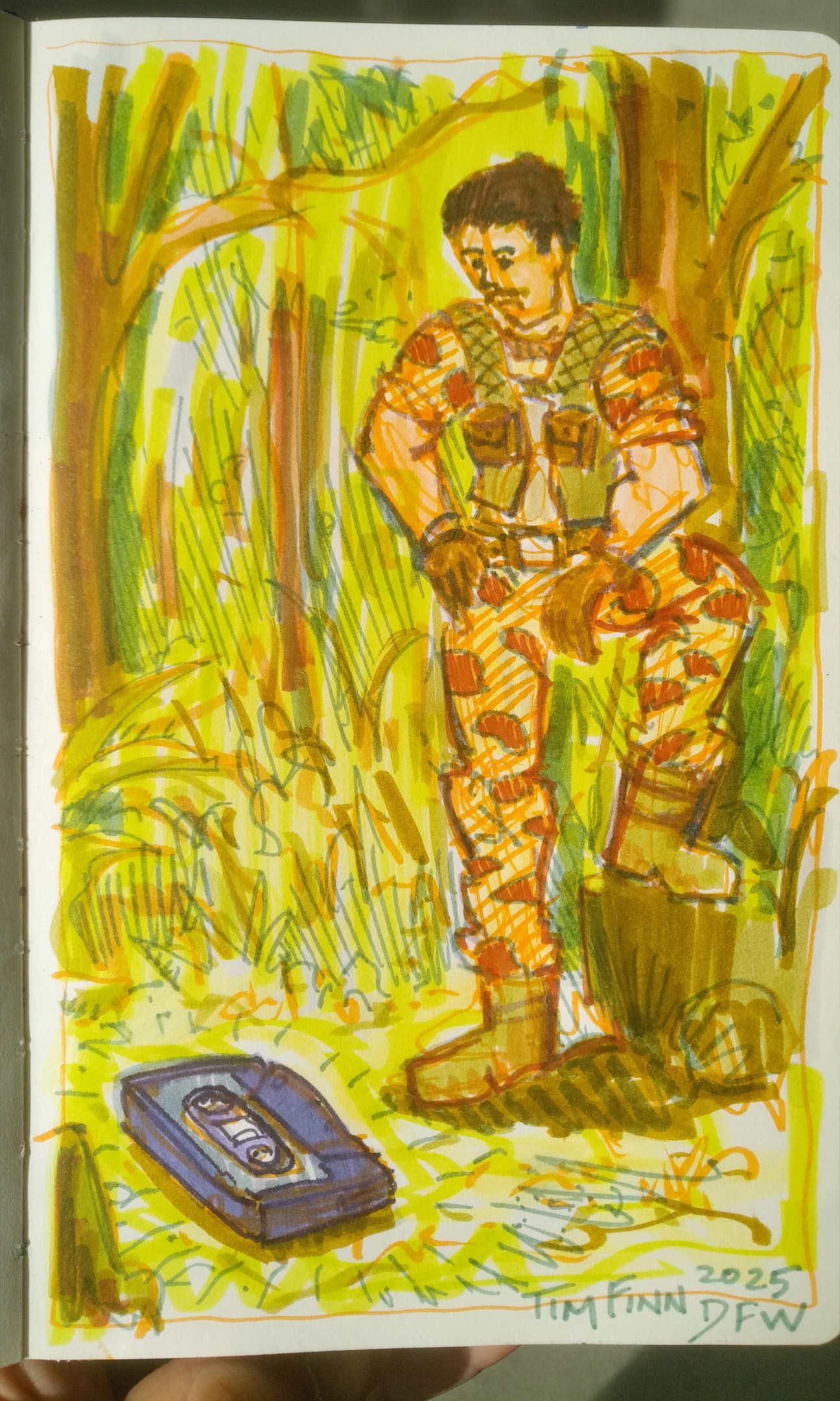 Woke up at 6 again. Partly the time zone, partly a positive anxiety, I didn’t mind. More time to get stuff done! I packed, and then drew Claymore in Michael Charles Hill’s sketchbook. Kickily’s opening piece was action and facing right, so I thought mine would be quiet and facing left.