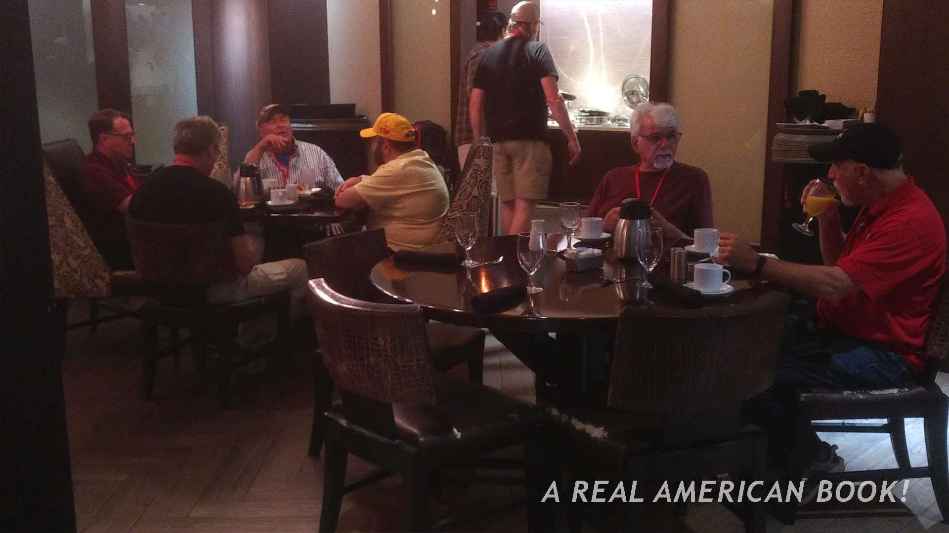 At 8 I headed downstairs for breakfast. At a table for four, Kirk Bozigian, Bob Swanson, Vinnie D’Alleva — all marketers, and Guy Cassaday, designer, were eating and talking. At the next table were Dave Kunitz and Greg Berndtson, both designers. I didn’t want to bother them as they weren’t yet on the clock, so I had to settle for this okay shot to capture the feeling rather than a proper candid, and even taking this felt a little intrusive. Once again, I love the idea that old co-workers and friends could be together at this show. Hats off again to Dan Klingensmith for organizing the “Joelebrities.”
