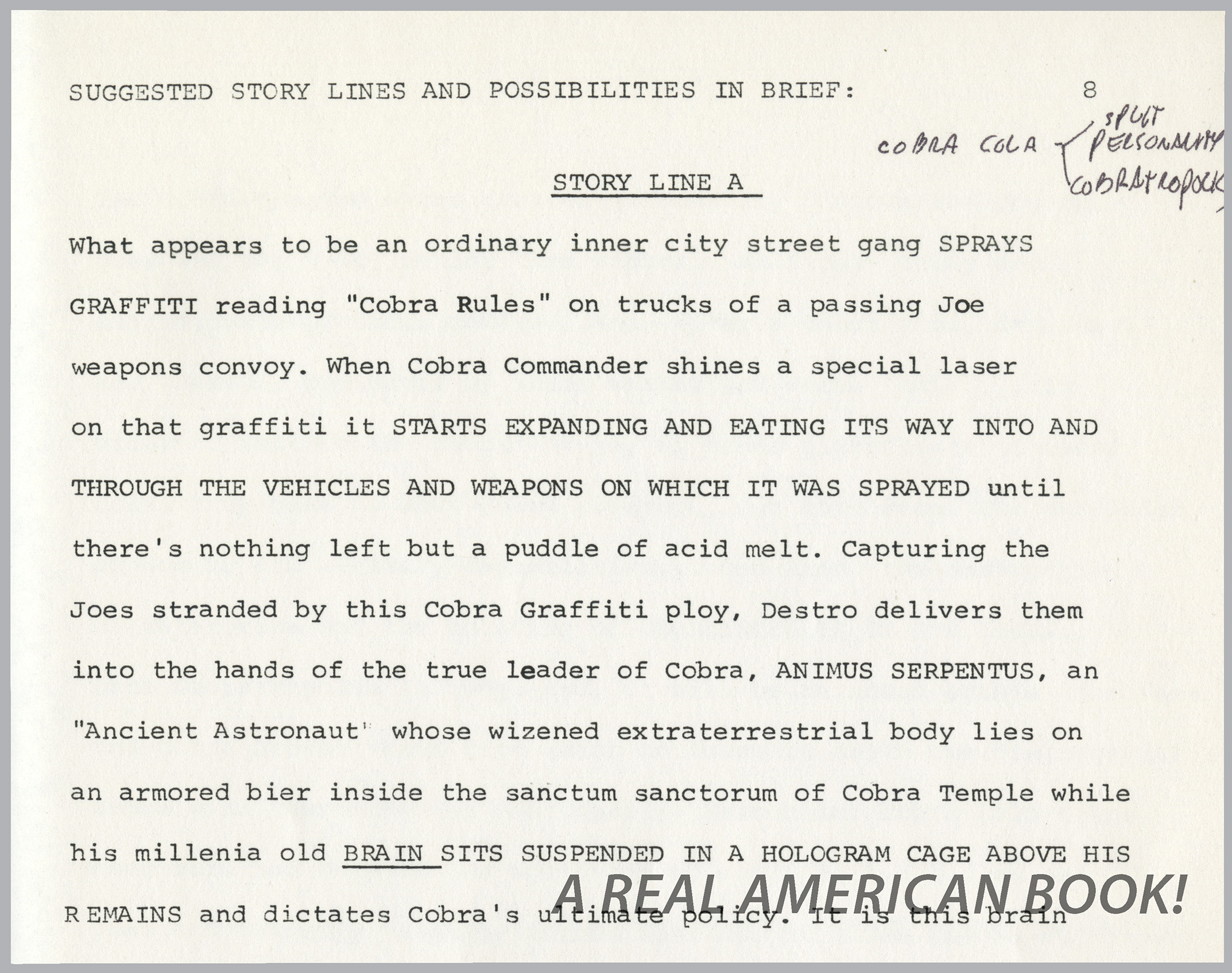 [Above: From Ron Friedman’s G.I. Joe: The Movie “More New Characters and Story Ideas,” dated May 31st, 1985.]