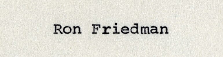 It was a pleasure speaking with him, and I particularly can imagine what an engaging professor he must have been. It would have been fun to take his classes, to hear him talk about what goes into a good script, what makes a compelling character, and to write weekly passages for him to comment on and grade. My condolences to Ron Friedman’s family, friends, and many former students.