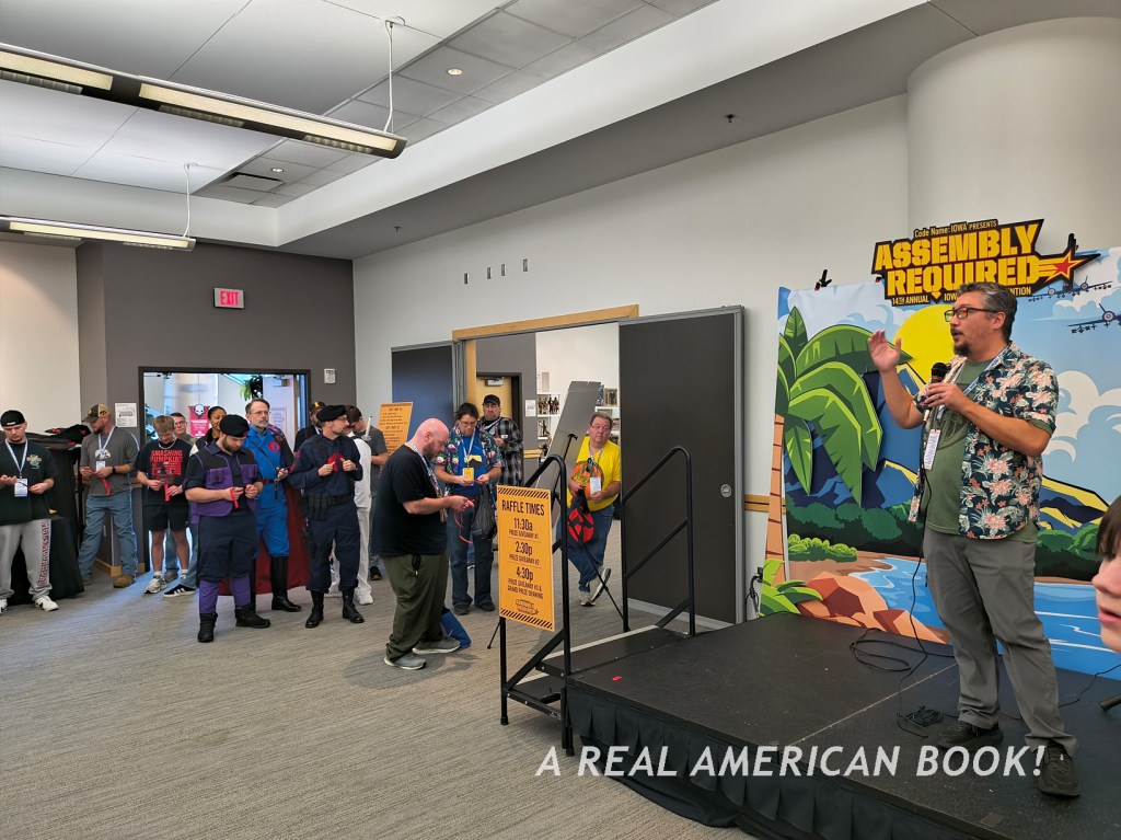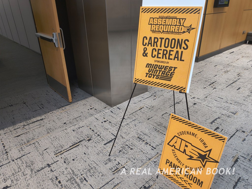 I missed this last year, and was happy to both get a bowl of sugar cereal and also take in some ’80s G.I. Joe animation with an appreciative audience. In terms of community, Cartoons and Cereal is right up there with every other element of Assembly Required. And there’s no admission, and the food is free! But in terms of presentation, Cartoons and Cereal is still the weak link at AR. The ceiling lights in the room are on, so the projection is pretty washed out, and the projector itself is the audio source with its tiny onboard speaker. But everyone in the front half of the room was quiet and respectful. They really were watching, and you really could hear. (Fun fact: G.I. Joe was a weekday show and not a Saturday morning one, but I certainly understand the theme of this free breakfast/indoor picnic.) I caught most of “The Viper” and the start of “Jungle Trap” before heading back to the hotel room for final prep.