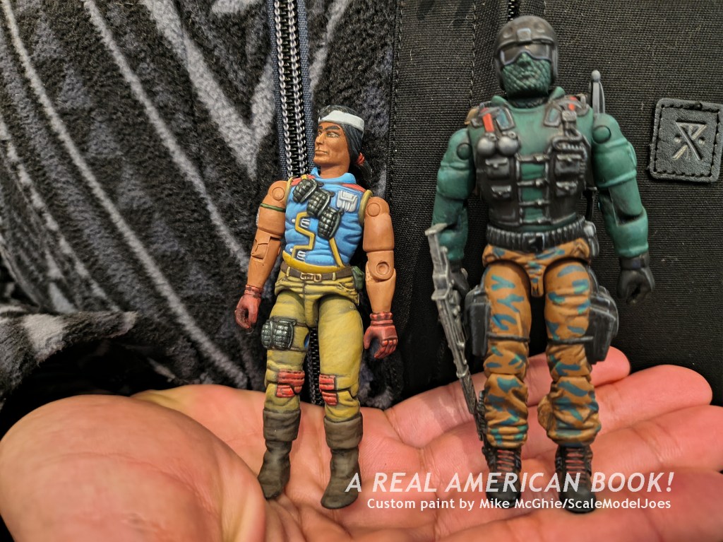 Besides being impressed with the actual technique above, a fun aspect of this is the mixing up of versions. That’s a later Spirit figure using his version 1 color scheme. Same for Beach Head there, that’s the version 2 figure with the version 1 colors. Neat!