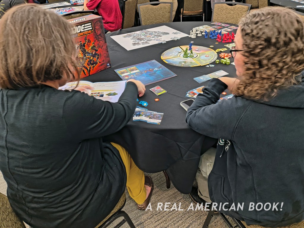 The Dealt Hand was going over the G.I. Joe: Mission Critical miniatures game with someone, who I realized was Becky Clemens, who’d joined the card game the previous night: