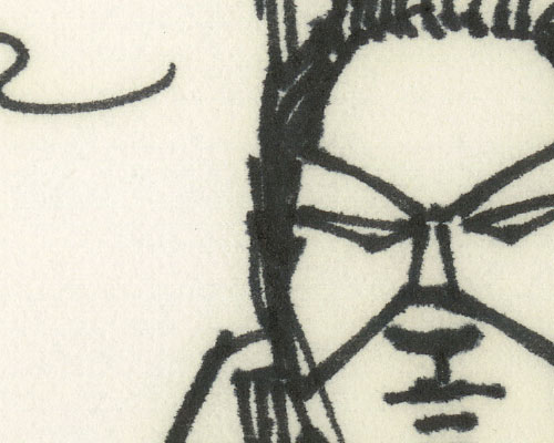 From 1981 to about 1987, Ron Rudat was Hasbro’s G.I. Joe figure designer. This drawing likely dates to 1984 or 1985. As with the last two we’ve examined here at A Real American Book!, it’s Rudat figuring out the look of Cobra’s Battle Android Trooper. Here’s a production B.A.T. that I purchased in 1986: