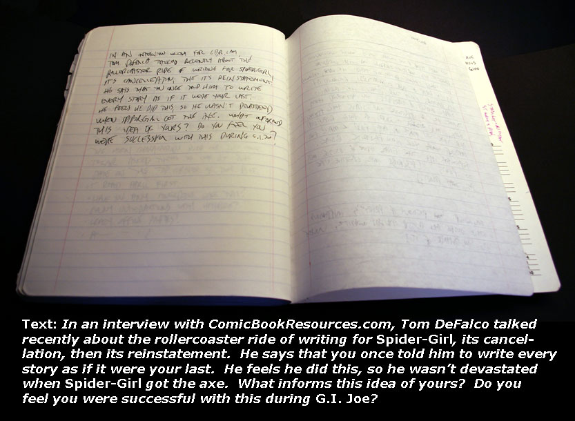 The idea of me writing a book had not coalesced, despite the revelation that John Michlig and Paul Dini would likely never write my ideal G.I. Joe history. It was still a vague notion. But one day while wasting time on the internet at work, I stumbled across Larry Hama’s e-mail address. I frequented toy and comic book news sites, and someone was announcing Hama’s birthday, or the completion of an interview. Hama wasn’t doing much in comics in the spring of 2001. His brief term as writer of the flagship Batman book the previous year was over, his seven-year Wolverine run had ended in ’97, and G.I. Joe’s 1994 finale was a distant memory. Finding this address was dumb luck, and felt like I was breaking some unspoken rule. This was a famous person, and I was not. Whatever kind of opportunity this was, I had to take it, and I had to ask for an interview, even if I didn’t know what for. I recall mentioning a “research project,” as if I was still somewhere in the limbo between my G.I. Joe Mixed Media issue and this as yet non-existent book. Surely the fan or webmaster who had included this address had done so by accident! I couldn’t just copy and paste it into a new e-mail message and bother the man, could I?