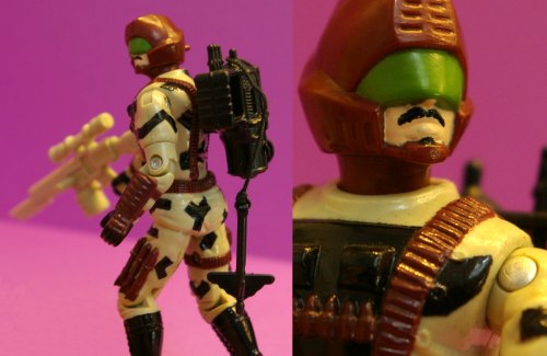Interesting to note this Cobra soldier, of which there were many (rather than a specific individual like Destro or Gristle) has a moustache. So I guess graduates from training school had a facial hair requirement?