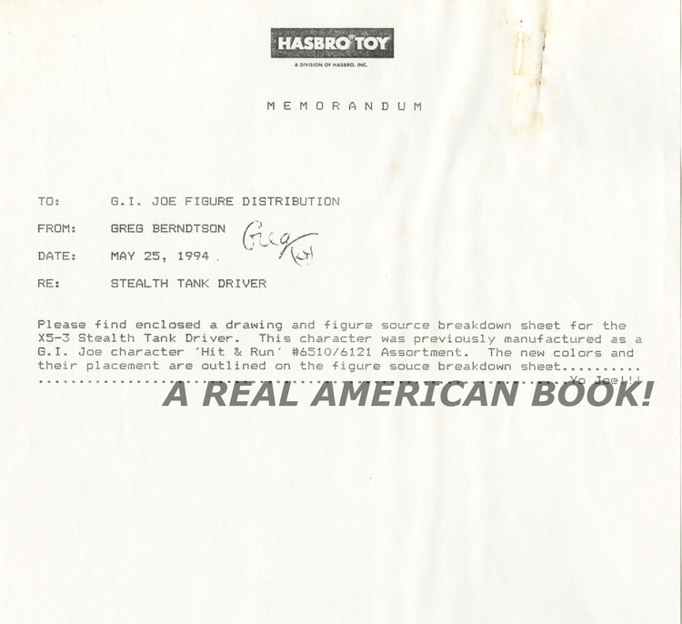 Indeed! According to this memo from Greg Berndtson, Hit & Run, whose figure was never recolored or re-released, was going to be re-used for the ’95 line as the Stealth Tank Driver! REVELATION. Here’s his turnaround.